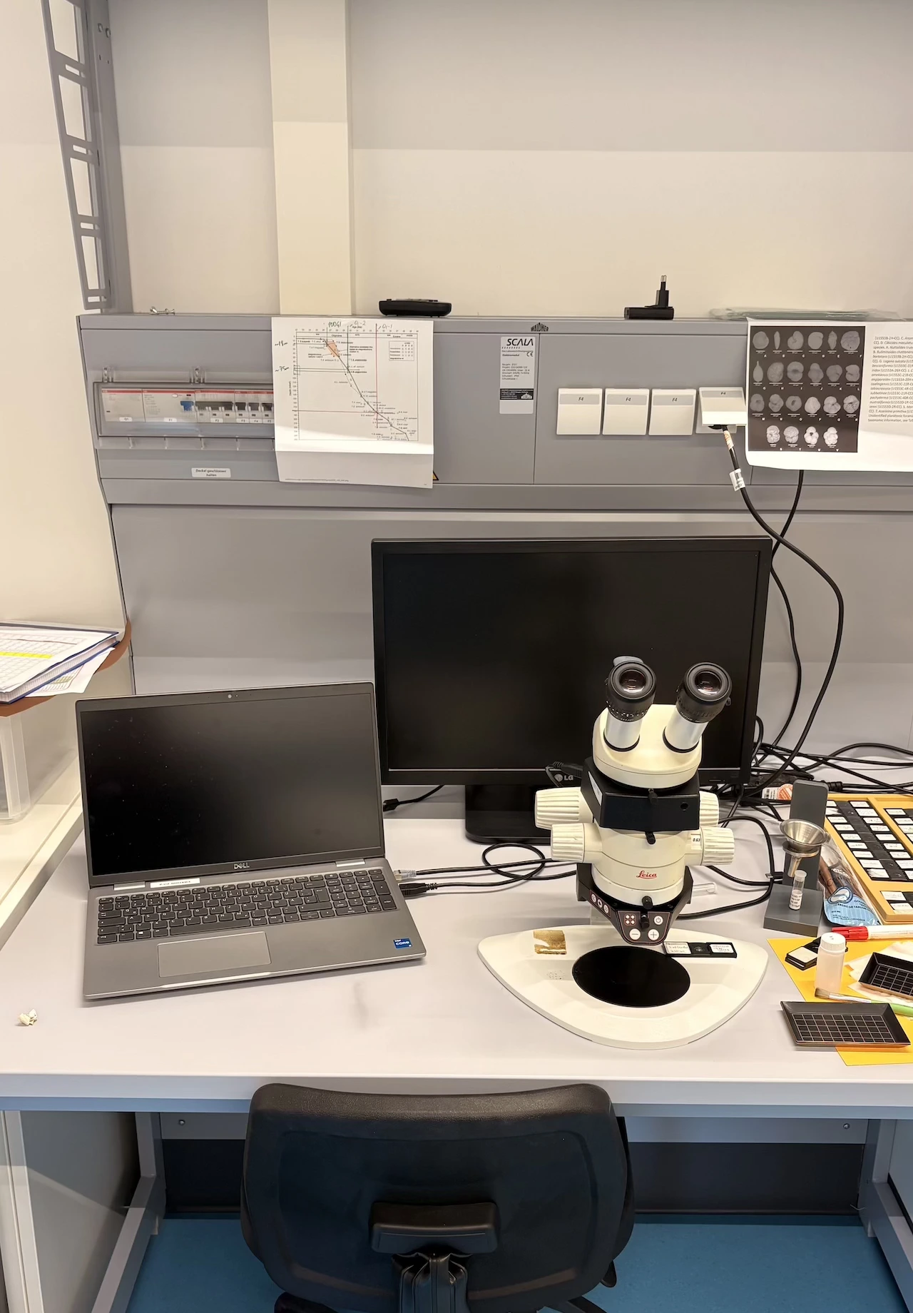 Our preparation lab offers four workplaces with binoculars to be used simultaneously for picking sample material. Additionally, we have multiple workplaces for sieving sediment core material and a workplace for coral preparation work, including a drilling station.